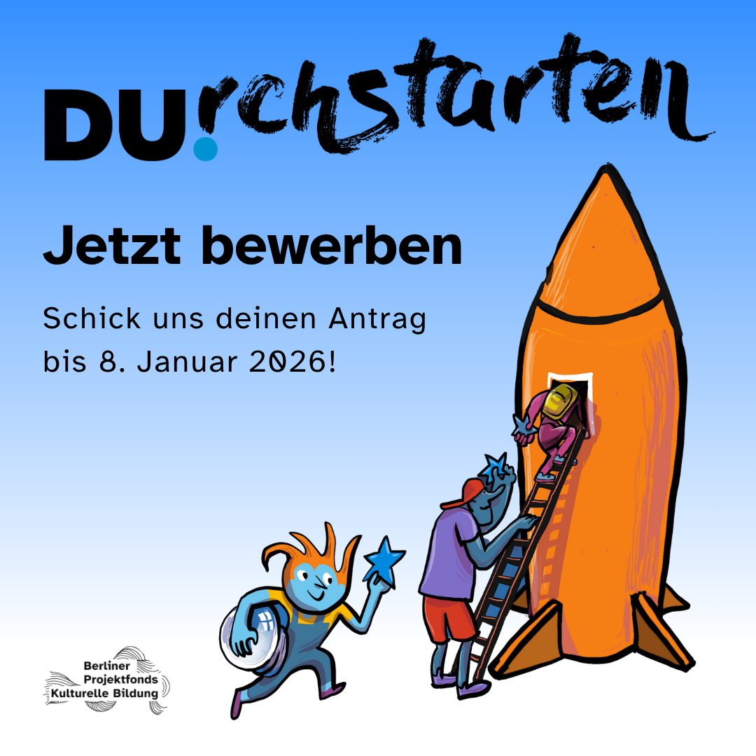 Durchstarten ermöglicht Personen, die künstlerische Projekte mit jungen Menschen leiten oder leiten wollen, einen Einstieg in die Projektförderung. Unterstützt werden Projekte von Personen, die bei anderen Förderprogrammen auf Barrieren stoßen, mit bis zu 12.000 Euro. Antragsschluss der aktuellen Förderrunde ist der 08. Januar 2026. Mehr